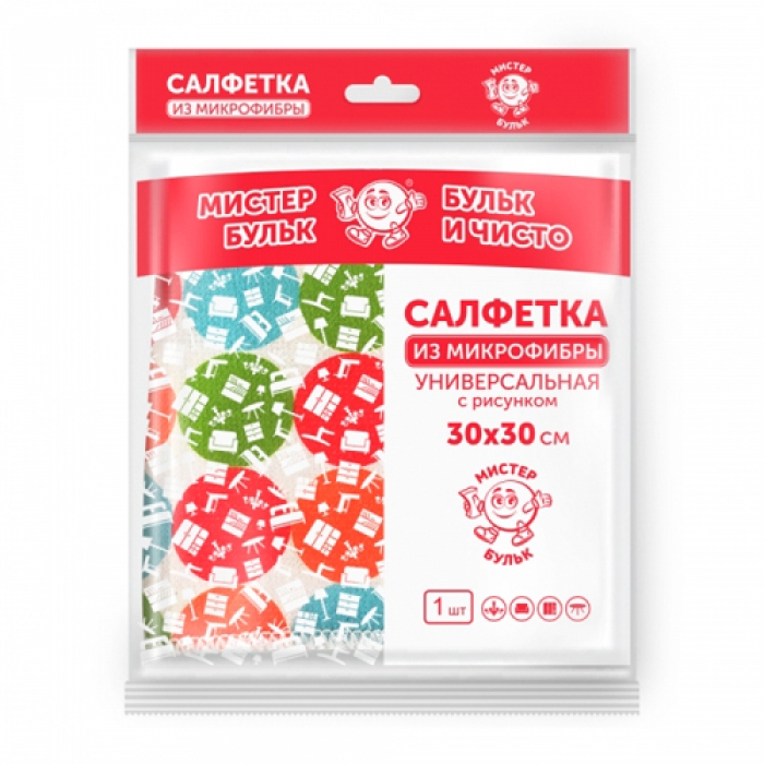 Салфетка Мистер Бульк из микрофибры с рисунком 1 шт (30х30 см) СХ014