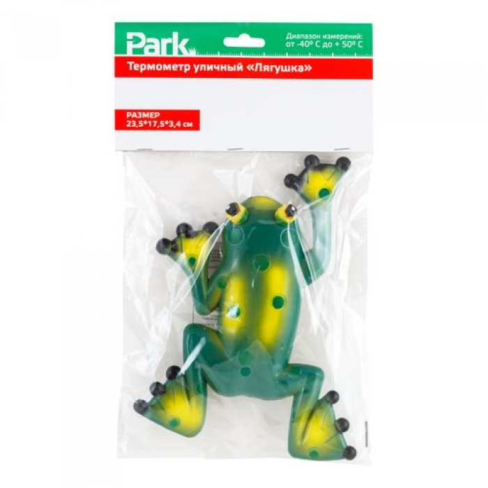 Термометр уличный "Лягушка" (002616)"Диапазон измерений: -40 + 50 гр.по шкале Цельсия. Размер: 23,5*17,5*3,4 см.(размер термометра 13*2,8 см). вес: 115 гр. Материал: пластик, резина, стекло, жидкость. 4 присоски для крепления термоментра к стеклу. Индивидуальная упаковка - пакет с биркой."