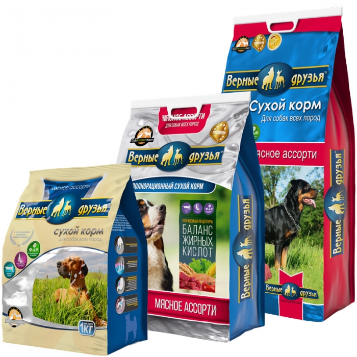 Верные друзья Корм сухой для взрослых собак всех пород 15кг Мясное ассорти
