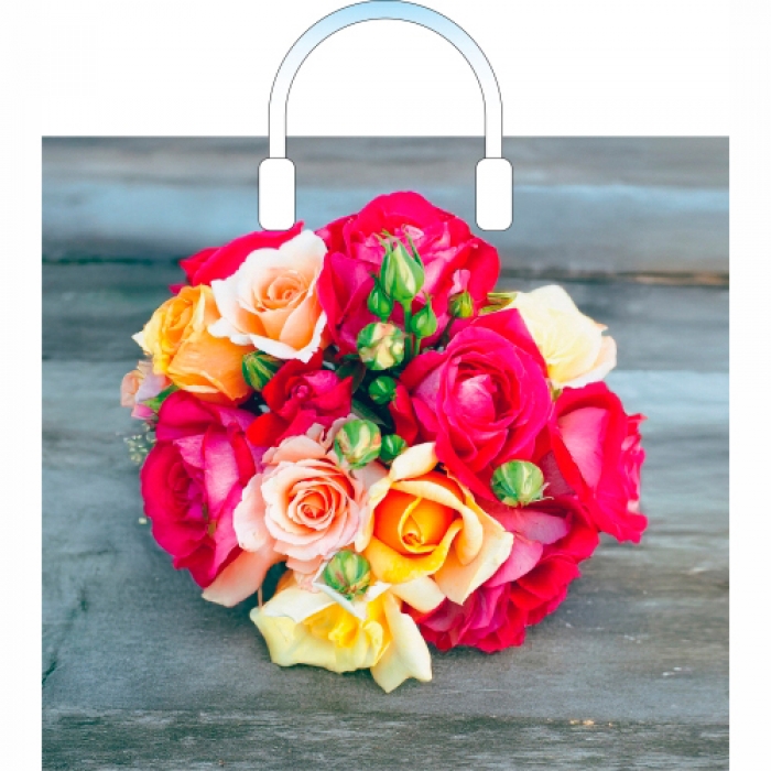 Пакет ПЭ с пластмассовыми ручками 38х34+3см (90) ((Волшебный букет)) Артпласт (х10/150) 220000392487