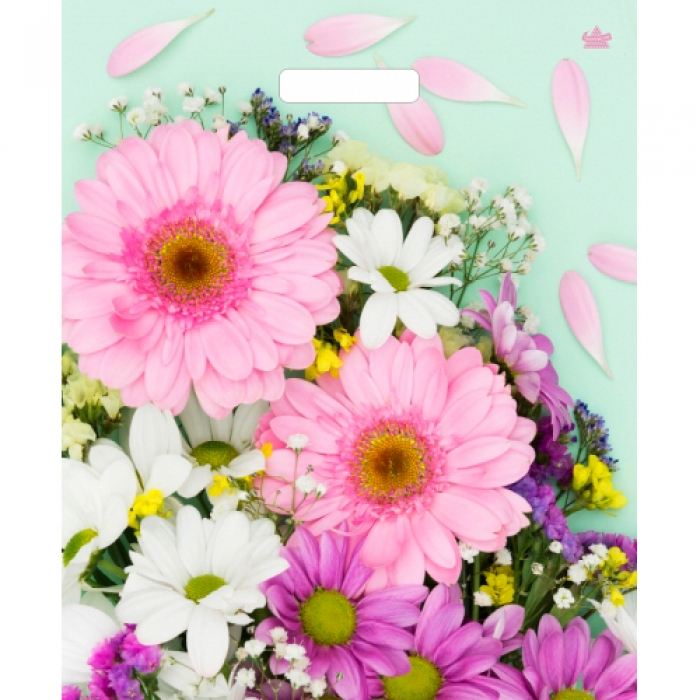 Пакет с вырубной ручкой 38х45+6см (60) (Нежные герберы) Глянцевый Тико (х50/500) ВУР55249