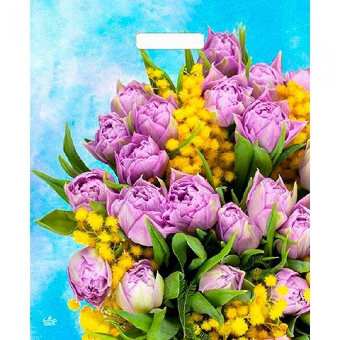 Пакет с вырубной ручкой 38х45+6см (60) (Сиреневые тюльпаны) Глянцевый Тико (х50/500) ВУР51807