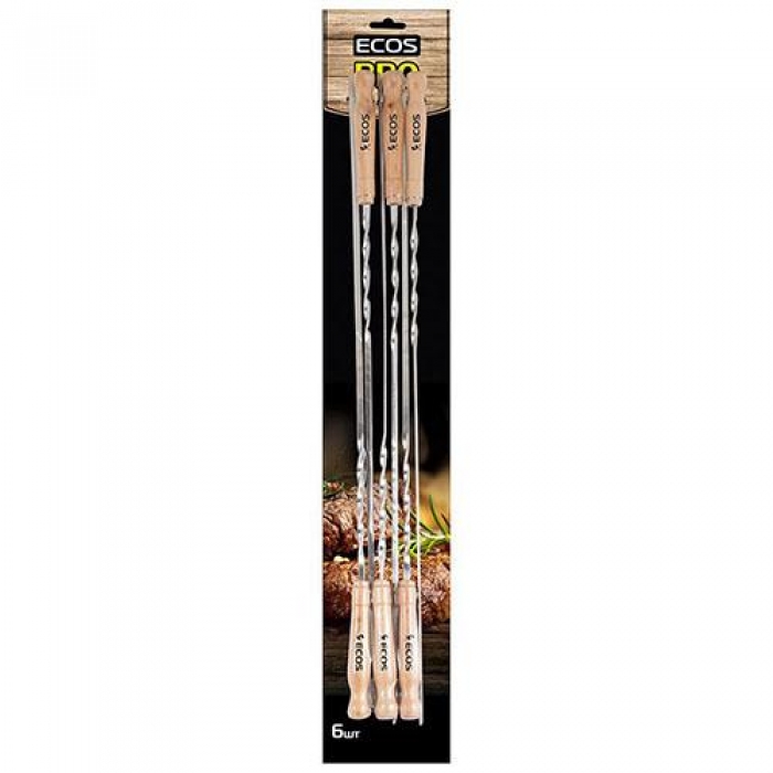 Шампуры с деревянными ручками ECOS 23021D (набор из 6 штук), нерж. арт.999629