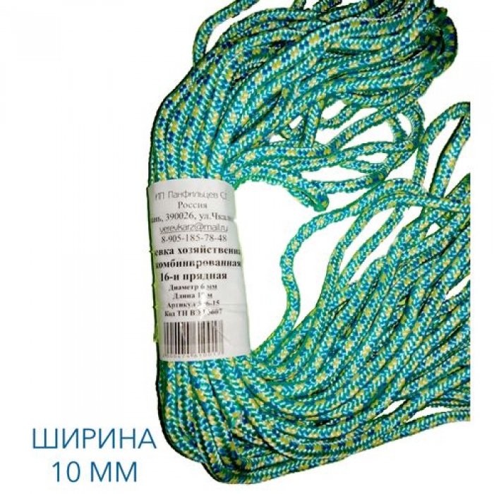 Шнур ПП 16 прядн. D=10mm L=20m. с серд цв